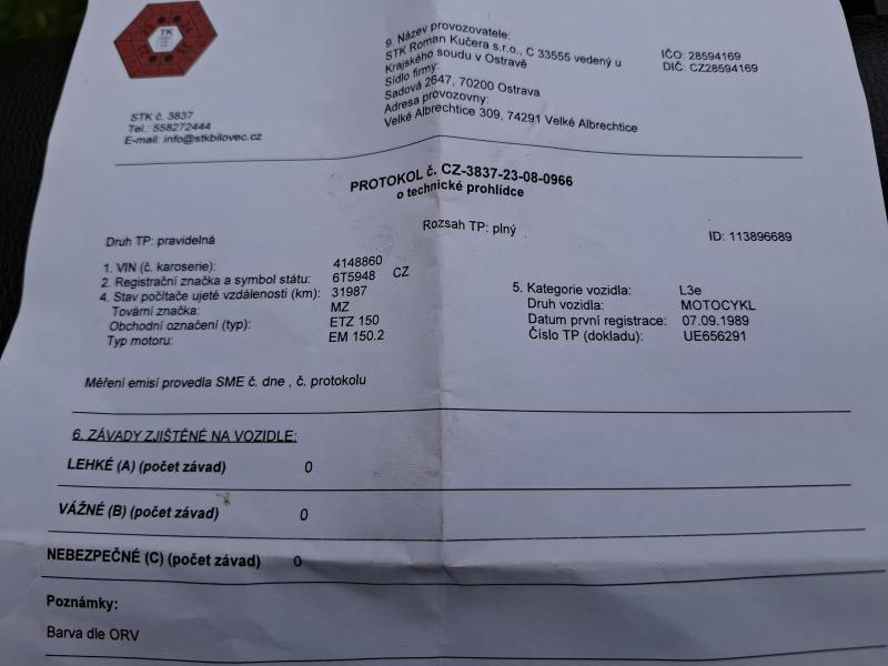 Poznámka k automobilu MZ ETZ 150 plně pojízdné